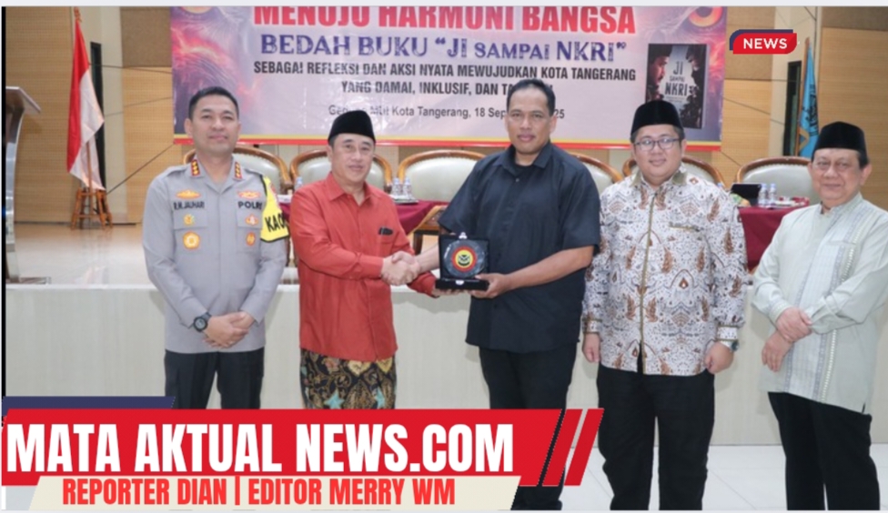 Tangerang, Mata Aktual News — Majelis Ulama Indonesia (MUI) Kota Tangerang menggelar acara bedah buku “JI Sampai NKRI” di Aula Gedung MUI Kota Tangerang, Kamis (18/9/2025). Kegiatan bertema “Merawat Indonesia, Menuju Harmoni Bangsa” ini menghadirkan tokoh agama, akademisi, aparat penegak hukum, serta lebih dari 250 peserta lintas elemen masyarakat.