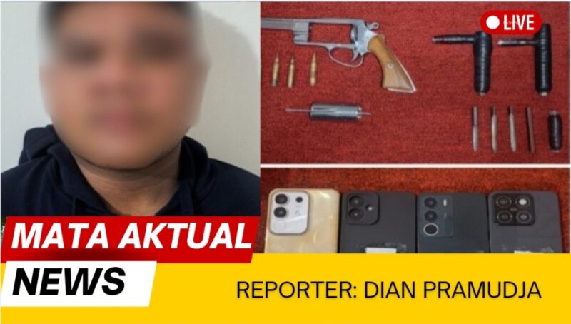 Tak hanya pelaku, polisi juga mengamankan barang bukti yang cukup mencengangkan. Di antaranya satu pucuk senjata api rakitan lengkap dengan empat peluru kaliber 5,56 mm, dua kunci T, satu kunci magnet, serta dua unit sepeda motor hasil curian.