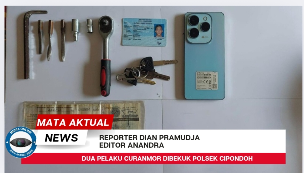 Tangerang, Mata Aktual News — Unit Reskrim Polsek Cipondoh berhasil membekuk dua pelaku spesialis pencurian kendaraan bermotor (curanmor) dalam rangka Operasi Sikat Jaya 2025. Penangkapan berlangsung setelah aksi kejar-kejaran dari wilayah Cipondoh hingga kawasan Daan Mogot, Jakarta Barat, pada Kamis (27/11/2025) dini hari.