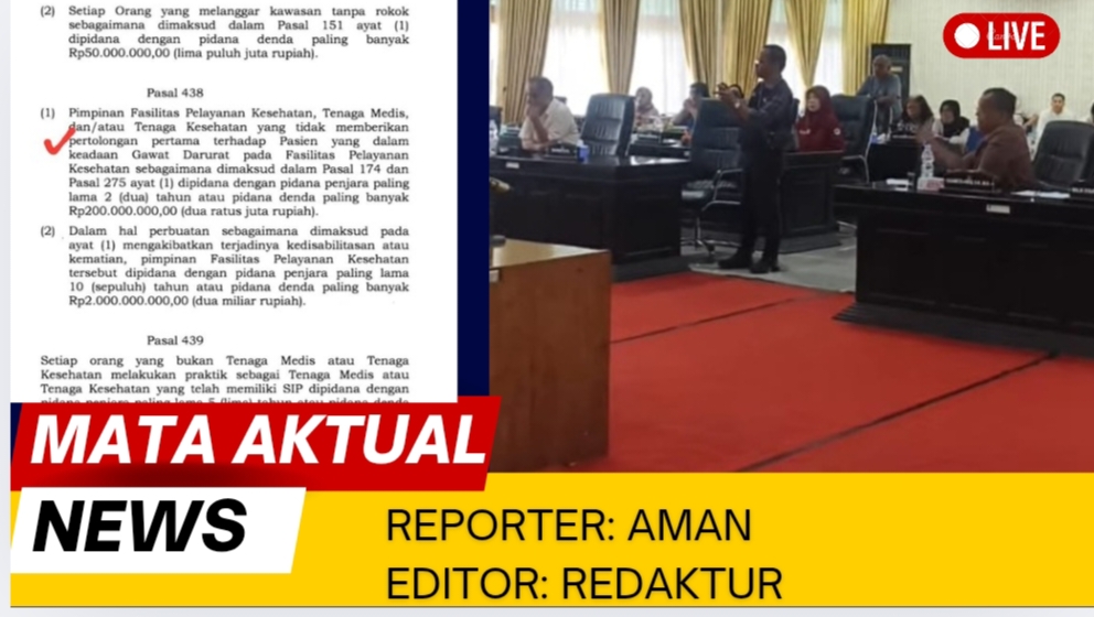 Tak hanya itu, DPRD juga memberi sinyal keras akan membawa persoalan ini ke ranah hukum bila ditemukan unsur pelanggaran. Dalam rapat, dewan merujuk Undang-Undang Nomor 17 Tahun 2023 tentang Kesehatan, khususnya Pasal 438 ayat (1), yang mengatur sanksi pidana atas penolakan atau pengabaian pelayanan kesehatan dalam kondisi darurat.