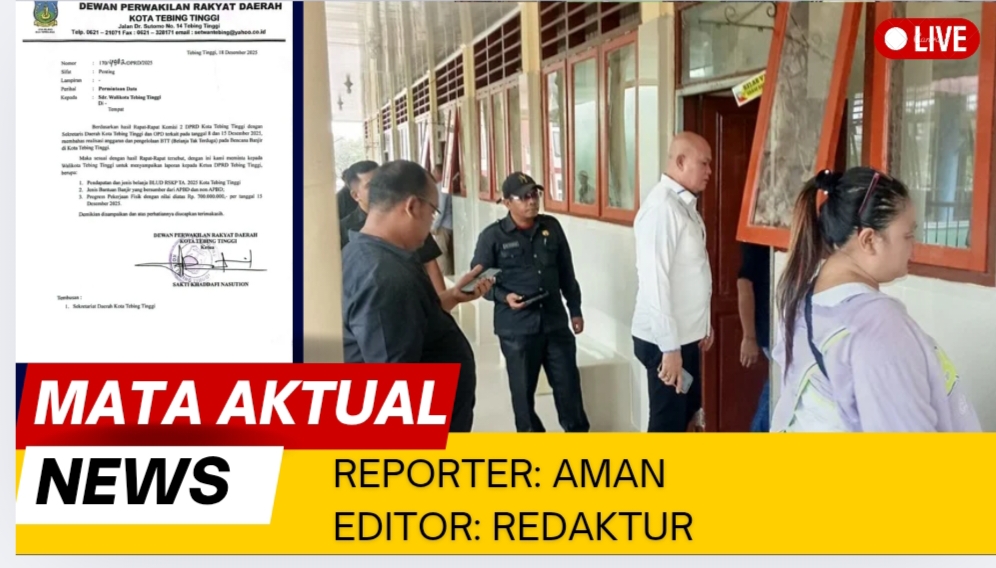 Surat kedua Ketua DPRD Kota Tebingtinggi bernomor 170/500/DPRD/2025 tertanggal 30 Desember 2025 yang diperoleh Mata Aktual News, Kamis (1/1/2026), bersifat penting. Dalam surat tersebut, DPRD secara tegas meminta Wali Kota Tebingtinggi menugaskan Dinas Pekerjaan Umum dan Penataan Ruang (PUPR) serta Dinas Pendidikan untuk menyerahkan dokumen kontrak pekerjaan sejumlah proyek yang menjadi perhatian dewan.