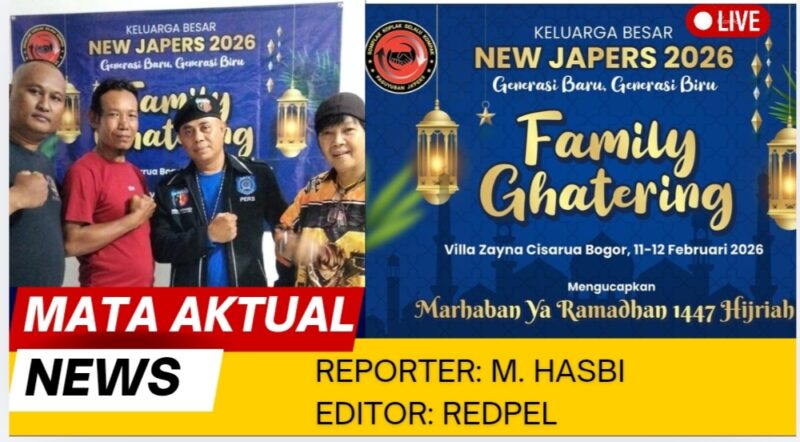 Bogor, Mata Aktual News– Paguyuban Jalin Persaudaraan New (JA’PERS) 2026 Generasi Baru Generasi Biru menggelar kegiatan family gathering di Villa Zayna, Kampung Jaipah RT 07 RW 04, Desa Batulayang, Kecamatan Cisarua, Puncak, Kabupaten Bogor, Rabu (11/2/2026).