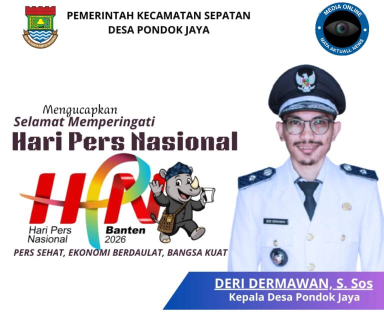 TANGERANG, Mata Aktual News — Kepala Desa Pondok Jaya, Kecamatan Sepatan Timur, Kabupaten Tangerang, Deri Dermawan, S.Sos, menyampaikan ucapan selamat memperingati Hari Pers Nasional (HPN) 2026 kepada seluruh insan pers di Indonesia, Sabtu (31/1/2026).