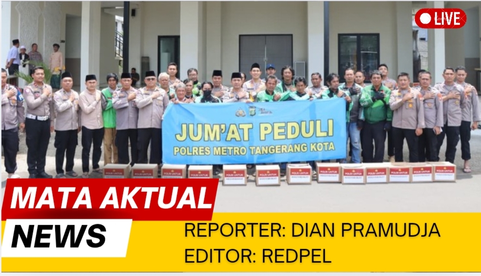 TANGERANG, Mata Aktual News– Kepedulian terhadap masyarakat kembali ditunjukkan jajaran Polres Metro Tangerang Kota melalui program sosial Jumat Peduli. Dalam kegiatan tersebut, Kapolres Metro Tangerang Kota membagikan paket sembako kepada para pengemudi ojek online (ojol) di Kota Tangerang.