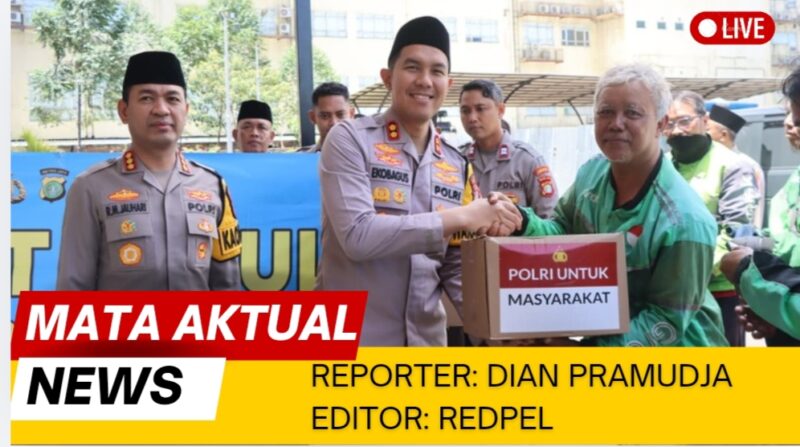 TANGERANG, Mata Aktual News– Kepedulian terhadap masyarakat kembali ditunjukkan jajaran Polres Metro Tangerang Kota melalui program sosial Jumat Peduli. Dalam kegiatan tersebut, Kapolres Metro Tangerang Kota membagikan paket sembako kepada para pengemudi ojek online (ojol) di Kota Tangerang.
