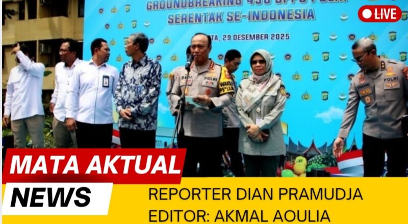 TANGERANG, Mata Aktual News– Kapolres Metro Tangerang Kota Kombes Pol. Dr. Raden Muhammad Jauhari, S.H., S.I.K., M.Si. menghadiri kegiatan groundbreaking Satuan Pelayanan Pemenuhan Gizi (SPPG) Polri yang digelar secara serentak di seluruh Indonesia dan dipimpin langsung oleh Wakil Kepala Kepolisian Negara Republik Indonesia, Senin (29/12/2025).