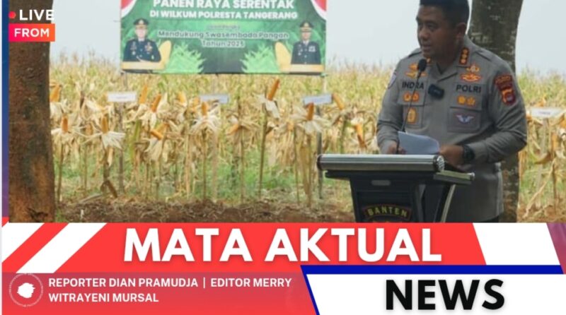 Tangerang – Mata Aktual News | Panen jagung di Kampung Batu Nunggul, Rajeg, Kabupaten Tangerang, Sabtu (27/9/2025), bukan sekadar pesta petani. Acara yang dihadiri Kapolresta Tangerang Kombes Pol Andi Muhammad Indra Waspada Amirullah itu menjadi simbol nyata dukungan aparat kepolisian terhadap program ketahanan pangan nasional yang dicanangkan Presiden Prabowo Subianto lewat Asta Cita.