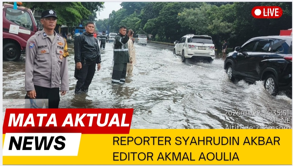 Jakarta, Mata Aktual News— Kepala Satuan Polisi Pamong Praja (Satpol PP) Kecamatan Jatinegara, Teguh, turun langsung meninjau kondisi genangan air di ruas Jalan DI Panjaitan, tepatnya di depan Gedung Patria Park, Kamis (22/01/2026) sekitar pukul 13.30 WIB.