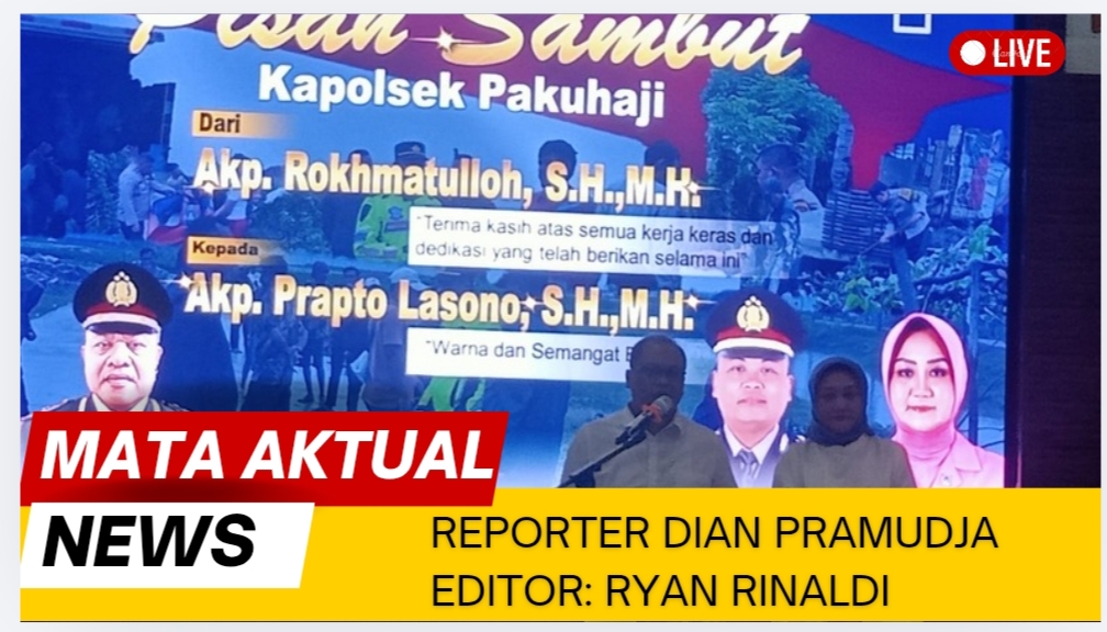 Pakuhaji | Mata Aktual News – Acara lepas sambut Kapolsek Pakuhaji dari AKP Rohkmatullah, S.H., M.H. kepada AKP Prapto Lasono, S.H., M.H. berlangsung khidmat dan penuh kehangatan, Selasa (17/02/2026), di Gedung Serba Guna kecamatan Pakuhaji.