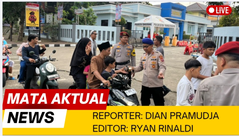 TANGERANG, Mata Aktual News – Puluhan pengendara yang masih terjebak di jalan saat azan magrib berkumandang, Sabtu (21/2/2026), mendapat takjil gratis dari petugas Polresta Tangerang. Aksi sosial ini digelar di depan markas Polresta Tangerang.