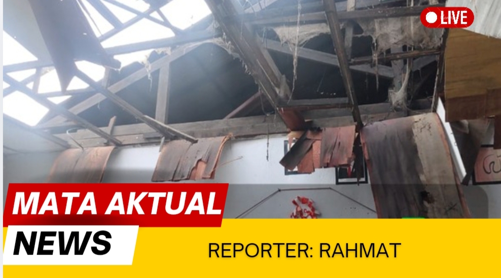 Peristiwa tersebut terjadi pada Jumat pagi (18/04/2026) sekitar pukul 07.17 WIB. Rangka atap tampak lapuk, sementara penutupnya runtuh dan menyisakan puing yang masih menggantung. Setiap saat bisa jatuh mengancam keselamatan siapa pun yang berada di bawahnya.
