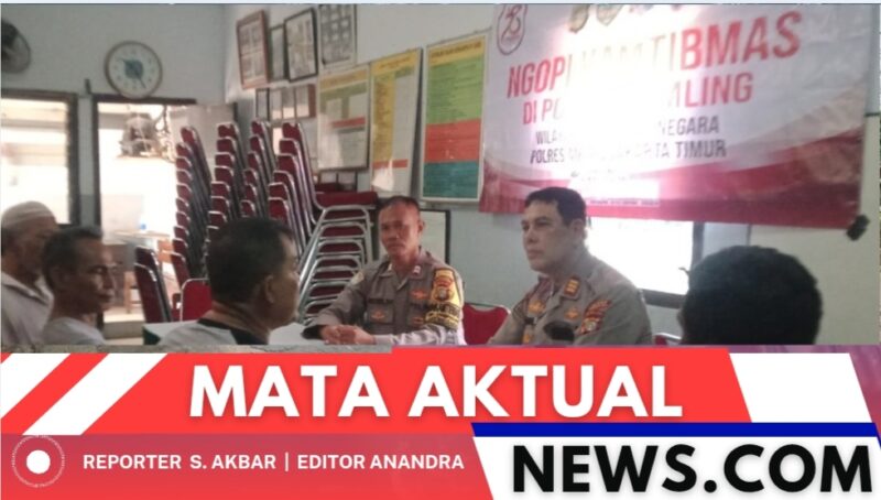 Jakarta Timur, Mata Aktual News– Kanit Binmas Polsek Jatinegara, AKP Ibnu Choirul N.T.H, S.H., bersama Bhabinkamtibmas, menggelar kegiatan NGOPI KAMTIBMAS (Ngobrol Pintar Keamanan dan Ketertiban Masyarakat) bersama tokoh masyarakat dan warga di Jln. Kebon Nanas Selatan III RW 05, Kelurahan Cipinang Cempedak, Kecamatan Jatinegara, Jakarta Timur, pada Jumat, 7 November 2025.