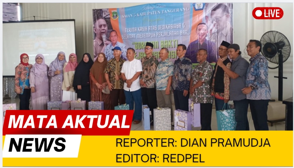 Tangerang | Mata Aktual News – Suasana haru dan penuh apresiasi mewarnai acara pelepasan purna tugas Kepala SMA Negeri 5 Kosambi, H. Krisma Dermaki, S.Pd, yang digelar di Rumah Makan Saung Ibu, Gang Pelor, Kampung Melayu, Kabupaten Tangerang, Kamis (12/02/2026).