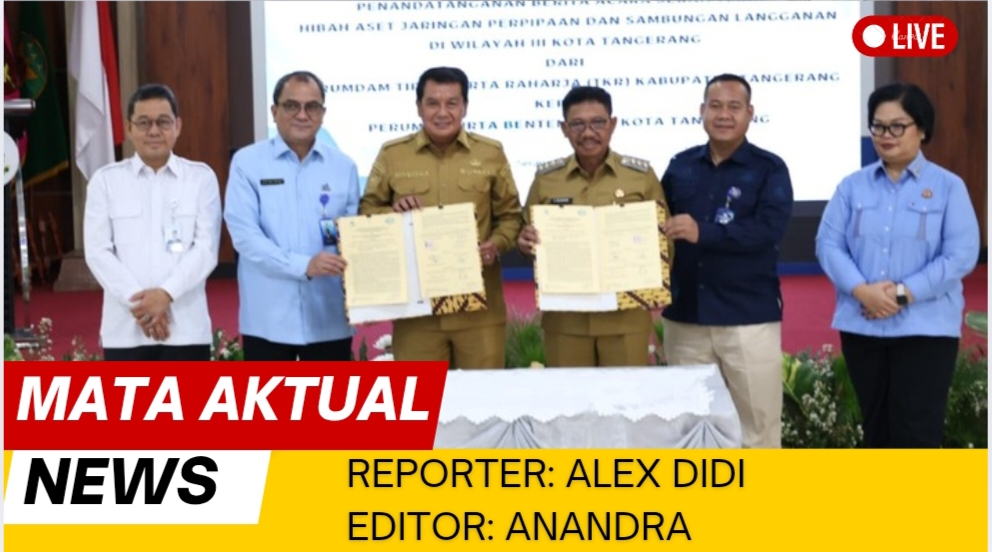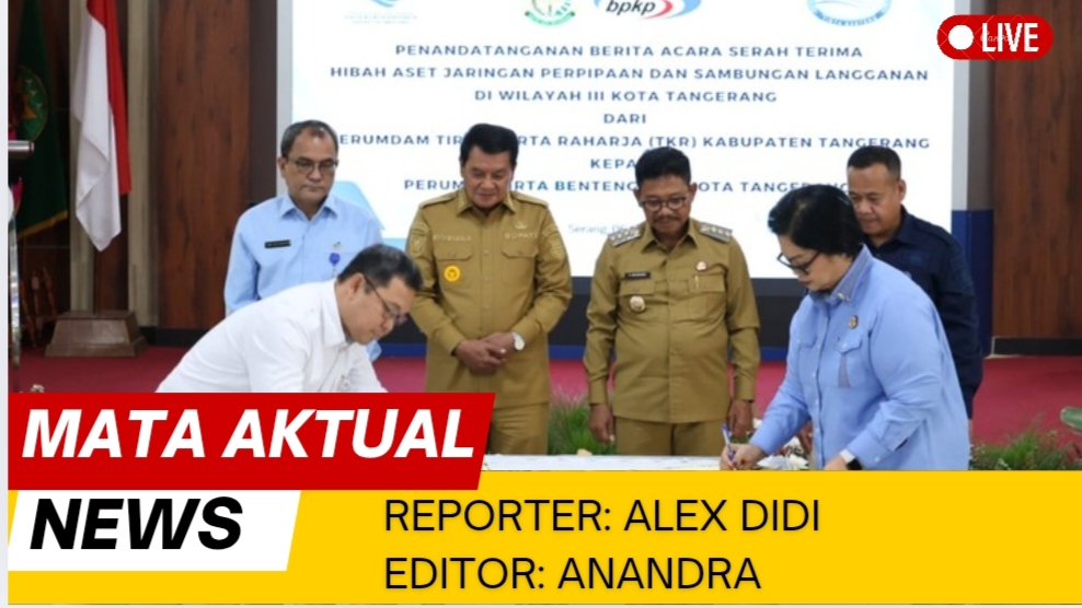 Tangerang, Mata Aktual News — Polemik panjang soal pengelolaan aset jaringan air bersih di wilayah Kota Tangerang akhirnya tuntas. Pemerintah Kabupaten (Pemkab) Tangerang dan Pemerintah Kota (Pemkot) Tangerang resmi menandatangani Berita Acara Serah Terima (BAST) hibah aset jaringan perpipaan dan sambungan langganan Wilayah III, Selasa (6/1/2026).