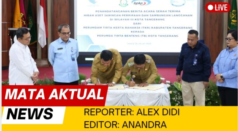 Tangerang, Mata Aktual News — Polemik panjang soal pengelolaan aset jaringan air bersih di wilayah Kota Tangerang akhirnya tuntas. Pemerintah Kabupaten (Pemkab) Tangerang dan Pemerintah Kota (Pemkot) Tangerang resmi menandatangani Berita Acara Serah Terima (BAST) hibah aset jaringan perpipaan dan sambungan langganan Wilayah III, Selasa (6/1/2026).