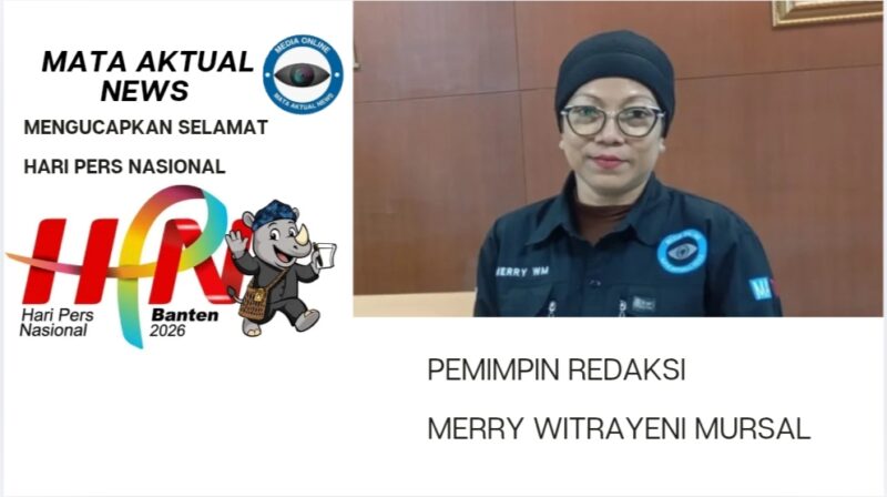 Pimpinan Redaksi Mata Aktual News, Merry Witrayeni Mursal, bersama seluruh jajaran redaksi, staf, Kaperwil, biro, serta wartawan Mata Aktual News yang bertugas di Jakarta maupun di berbagai daerah di Indonesia, menyampaikan ucapan Selamat Hari Pers Nasional (HPN) 2026. Kamis, (5/2/2026)