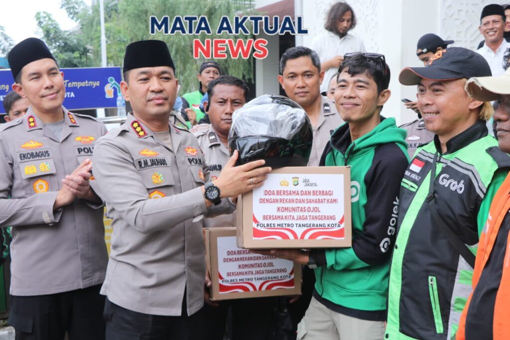Tangerang | Mata Aktual News – Polres Metro Tangerang Kota menggelar acara doa kebangsaan bersama ratusan driver ojek online (Ojol), Senin (8/9/2025). Kegiatan yang dipusatkan di Masjid Al Fatah Mapolres Metro Tangerang Kota ini bertujuan mempererat silaturahmi sekaligus menjaga keamanan dan kondusifitas wilayah, khususnya di Kota Tangerang.