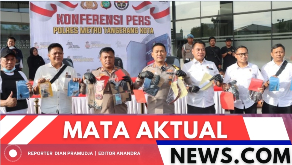 Konferensi pers pengungkapan kasus ini dipimpin langsung oleh Kapolres Metro Tangerang Kota Kombes Pol Dr. Raden Muhammad Jauhari, S.H., S.I.K., M.Si., didampingi Wakasat Reskrim Kompol Antonius, S.H., M.H., serta sejumlah pejabat utama Polres dan para Kanit Reskrim Polsek jajaran: Karawaci, Jatiuwung, dan Ciledug.