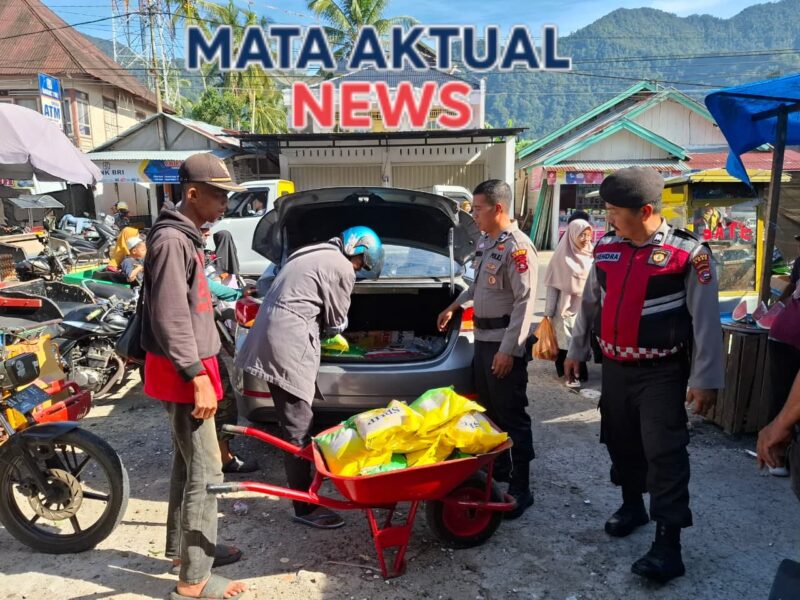 Agam, Mata Aktual News – Polsek Tanjung Raya menggelar kegiatan pendistribusian Beras Stabilisasi Pasokan dan Harga Pangan (SPHP) di Pasar Nagari Rabaa, Kenagarian Koto Kaciak, Kecamatan Tanjung Raya, Kabupaten Agam Rabu, (3/9/2025)
