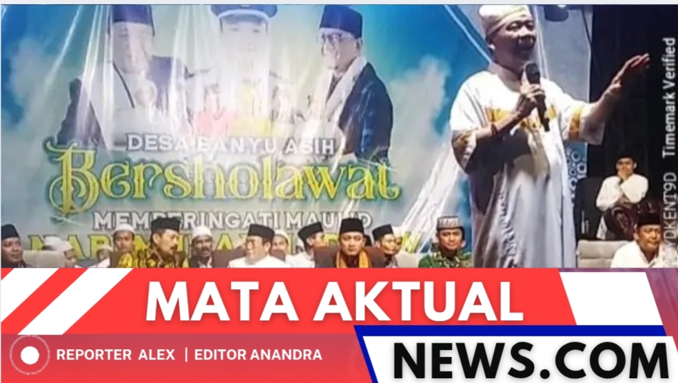 Kabupaten Tangerang, Mata Aktual News — Suasana penuh haru dan berkah menyelimuti Lapangan Tanah Merah RT 11/12, Kampung Kebon Raya, Desa Banyu Asih, Kecamatan Mauk, Kabupaten Tangerang, pada Sabtu malam (1/11/2025). Ribuan jamaah dari berbagai wilayah tumpah ruah menghadiri acara Banyu Asih Bersholawat dalam rangka memperingati Maulid Nabi Muhammad SAW.