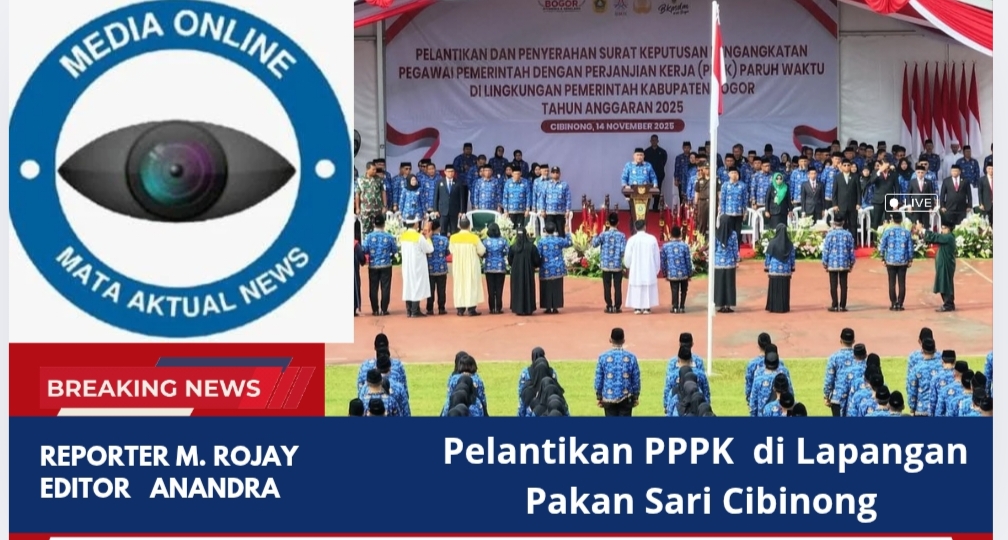 CIBINONG, Mata Aktual News— Bupati Bogor Rudy Susmanto kembali membuat gebrakan. Sebanyak 9.687 pegawai paruh waktu resmi dilantik menjadi PPPK dalam upacara megah di Lapangan Panahan Stadion Pakansari, Cibinong, Jumat (14/11/2025). Jumlah tersebut bukan main—terbesar yang pernah dilakukan pemerintah kabupaten/kota di seluruh Indonesia.