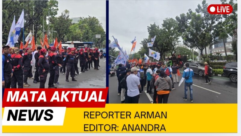 Jakarta | Mata Aktual News — Sejumlah buruh PT Transjakarta yang tergabung dalam Serikat Pekerja Dirgantara Digital dan Transportasi (PUK SPDT–FSPMI) menggelar aksi unjuk rasa dengan berjalan menuju Istana Negara, Jumat (19/12/2025).